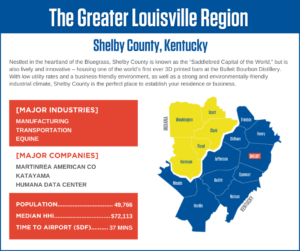 The Greater Louisville region is made up of 15 counties surrounding the Greater Louisville and Southern Indiana areas, home to more than 1.4 million people and over 58,000 businesses. The unique advantages of the region’s strategic location (within a day’s drive of two-thirds of the U.S. population), and outstanding quality of life cannot be over-stated. The region offers varied landscapes and lifestyles for any type of company and every type of person.
